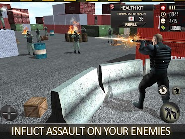 You are a lone army commando in this suicide killer shooting assault. This is a do or die situation for. Use your special commando shooting skills to combat the armed men & eliminate the resistance with force. Battle against the terrorist and kill them all. Terrorist have targeted four cargo ships. They are in a contract to take down the US military supplies and armory containers, sent to aid the army in the war invaded city. Trigger your fury, gear up with real exotic weapons and use them against the terrorist squad. Be the ultimate combat shooter to take out the unwanted men and end as the survivor.