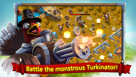 - Turkinator is here! – Battle the Leftover Legion, lead by the mighty Turkinator! His ferocious flock will leave your base in ruins!