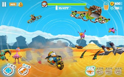 In addition to the weapons, you can also use upgradeable power-ups such as the homing missiles or thunderstorm, to name a few. Use these power-ups strategically to get through the tougher levels and maximize bird casualties!